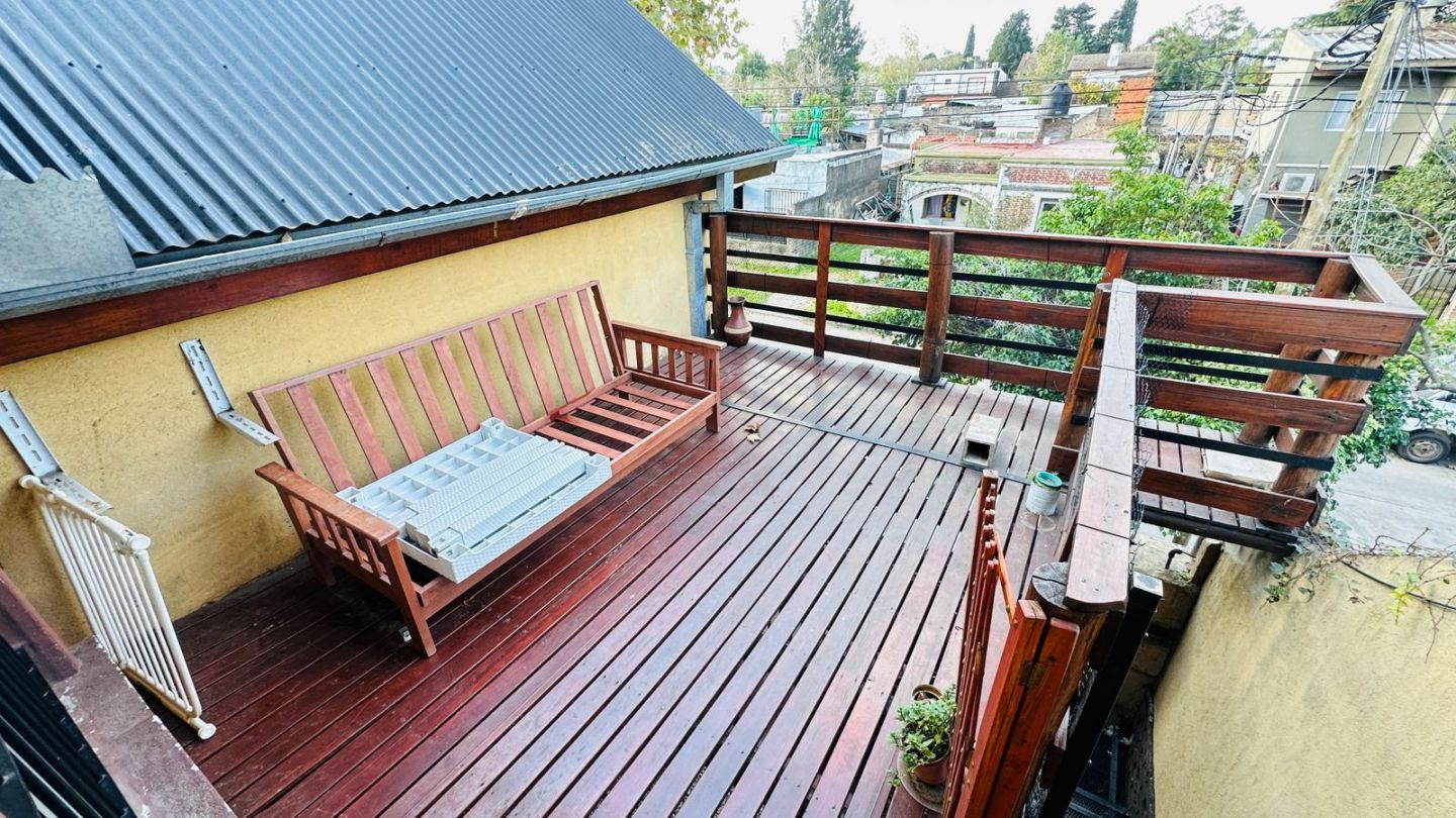 DEPARTAMENTO 2 AMBIENTES DE APROX 55M2 EN PLANTA ALTA, TIPO PH. CUENTA CON LIVING COMEDOR CON COCINA INTEGRADA CON AMOBLAMIENTO DE BAJO MESADA Y ALACENA, UN DORMITORIO CON PLACARD E INTERIOR DE PLACARD, PLAYROOM PEQUEÑO, UN BAÑO COMPLETO CON DUCHA, TERRAZA CON DECK.