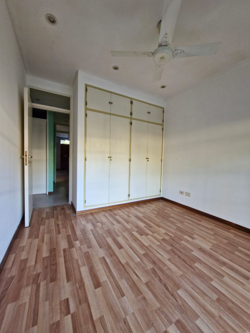 Ingreso a la misma por amplio living- comedor con hogar, cocina totalmente amoblada, integrada con barra desayunadora, toilette, dos dormitorios con placar embutido y ventanas balcon con acceso al parque. Amplio quincho, con cocina independiente y baño. Parque, pileta. Porton automatizado, cochera pasante.