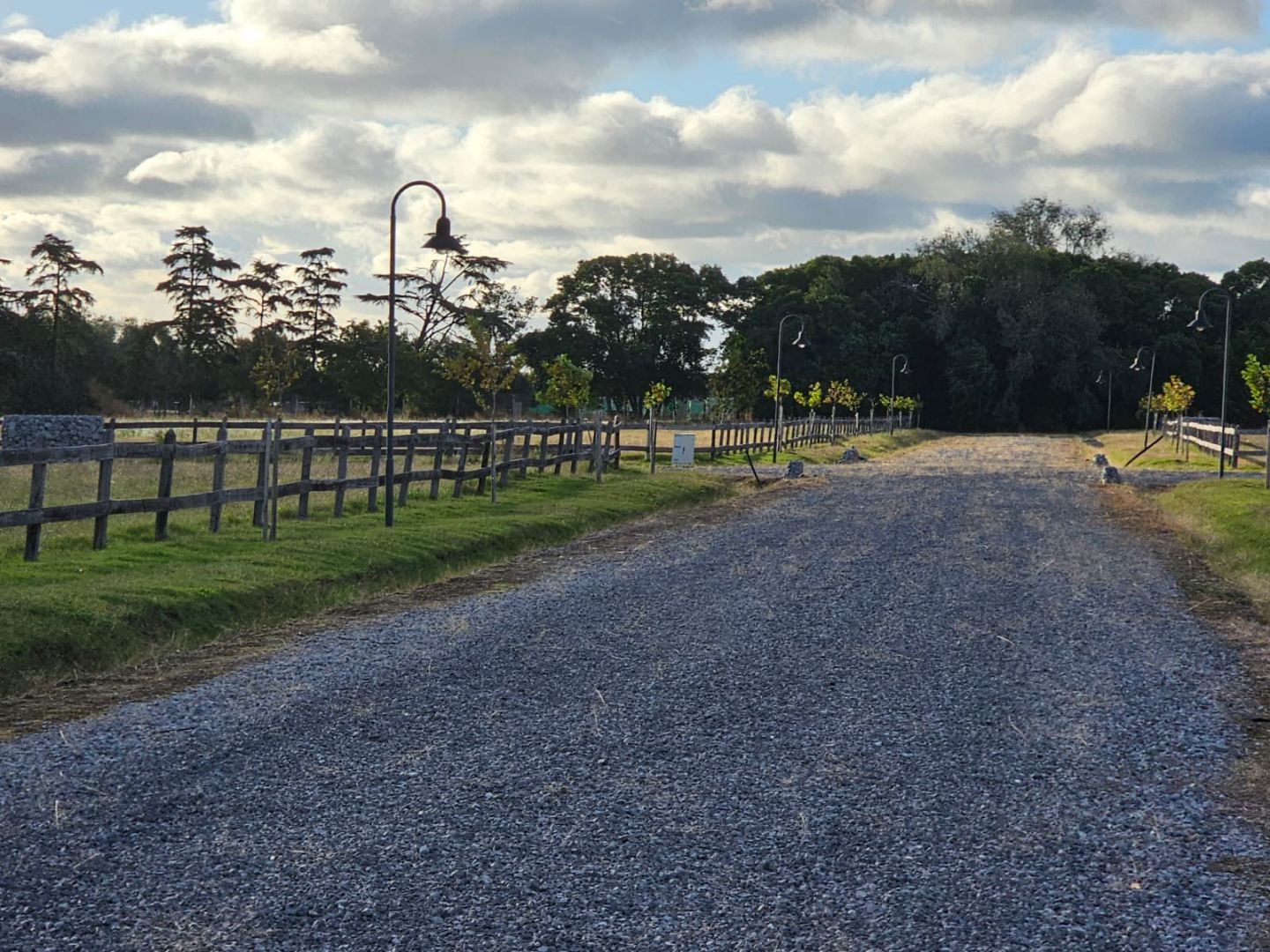El proyecto respeta la arboleda existente, creando senderos para caminar, andar a caballo o en bicicleta, integrándose al paisaje natural.
